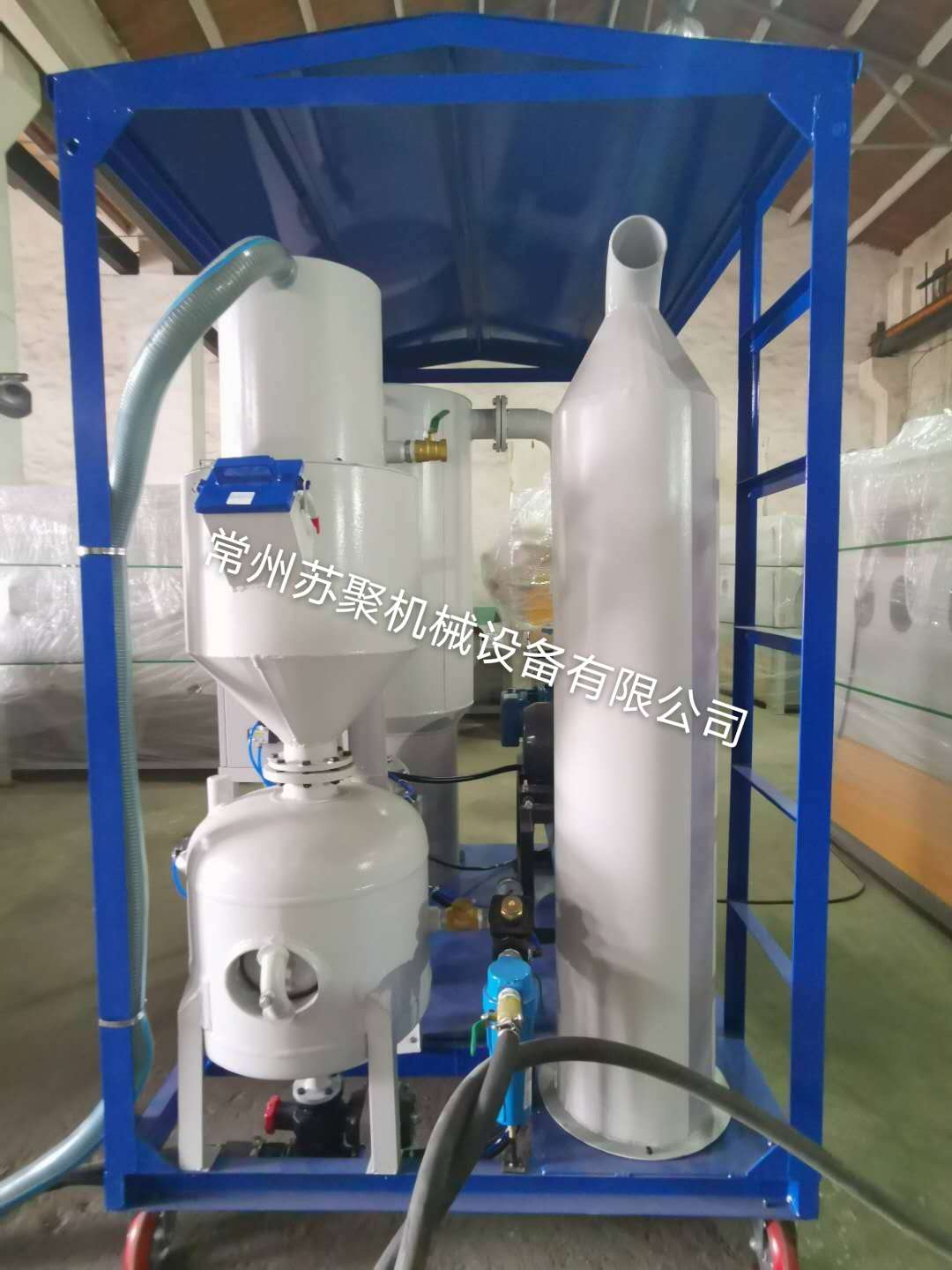 邊噴邊回收式噴砂機主要由噴砂機主機、移動平臺車、脈沖除塵器等組成。